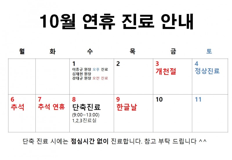 진료실 별 마감 시간은 다를 수 있으니, 방문 전 전화 문의 후 방문 부탁 드립니다~!